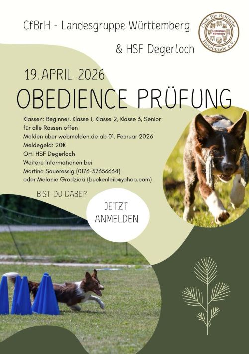 Mit großer Freude blicken wir auf unser geplantes Obedience-Turnier am 19.04.2026